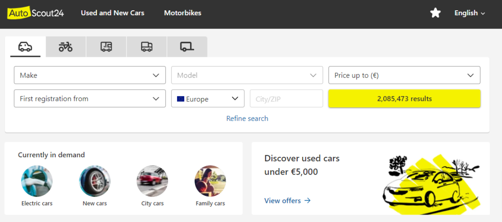 AutoScout24 is Europe’s largest online automotive marketplace, providing a trusted platform for buying and selling vehicles across the continent. It serves a wide range of users including individual consumers, car dealerships, and business partners in the automotive, finance, and insurance industries. The platform features a comprehensive selection of listings—from used and new cars to motorcycles, caravans, and commercial vehicles. With its wide reach and robust digital infrastructure, AutoScout24 plays a central role in streamlining the online car trading experience across Europe.